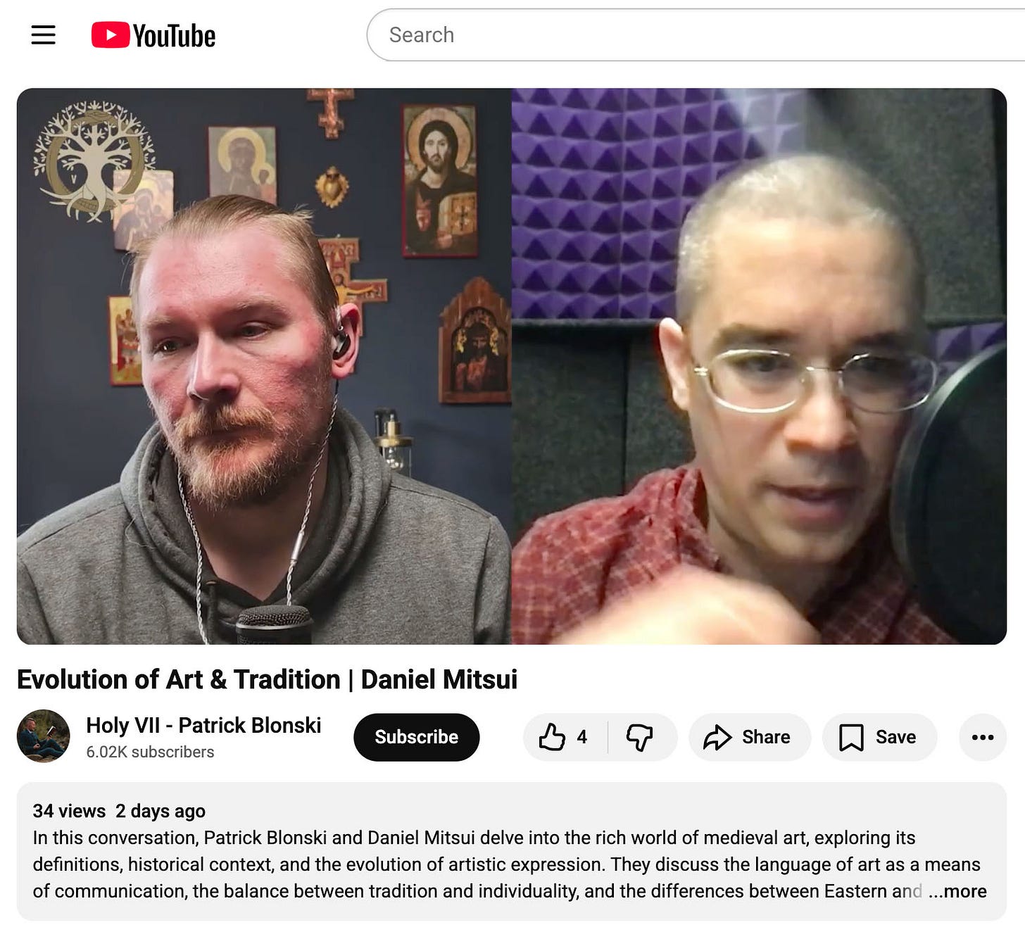 I recently sat for an interview with Patrick Blonski of the Holy VII podcast. We discussed many subjects related to medieval art, its history, and its symbolism. The interview can be watched on YouTube here.